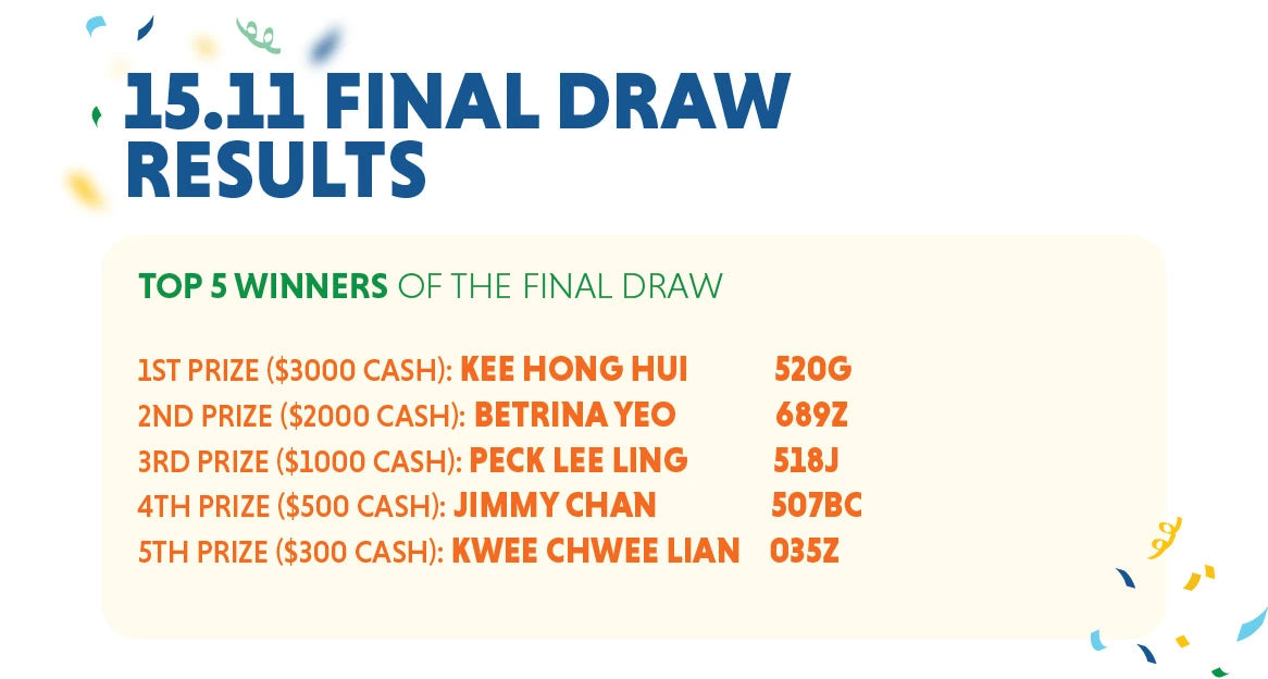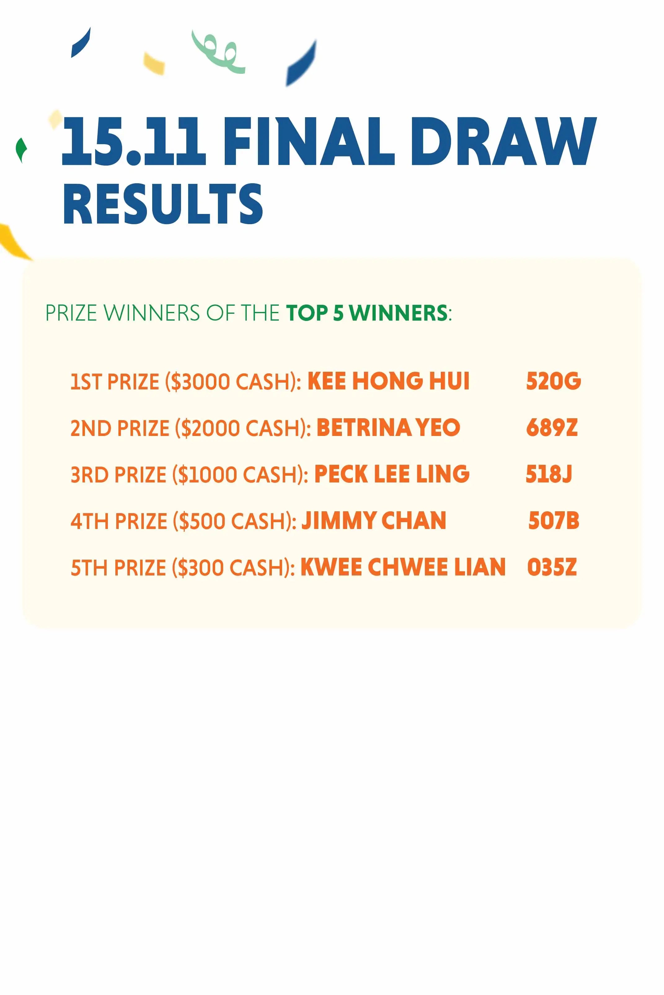 2.16. The Lucky Draw will be conducted at Block 3021 Ubi Avenue 2 #01-169 Singapore 408897, which will be livestreamed on our official platforms.